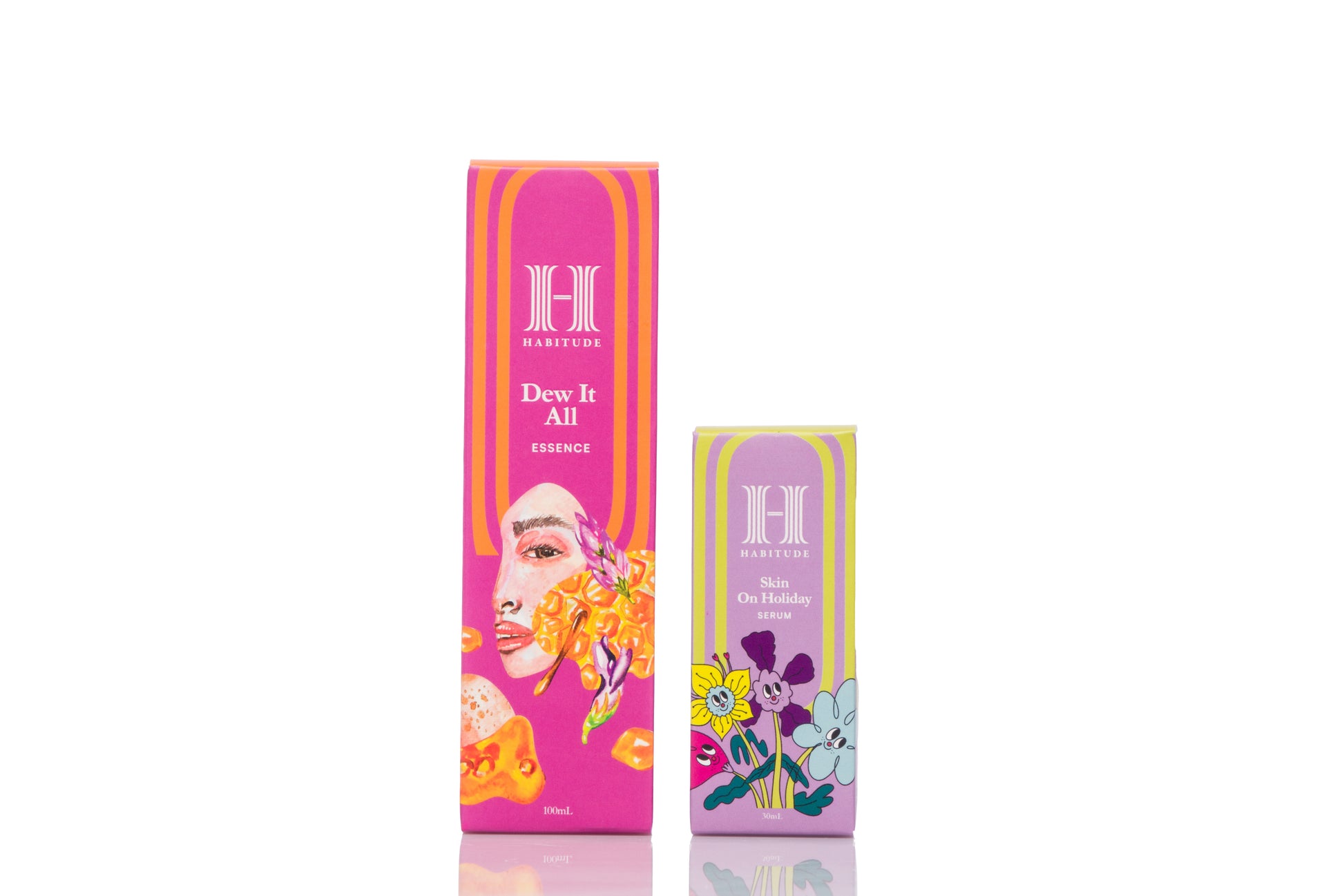 This bundle includes: Dew It All Essence and Skin On Holiday Serum