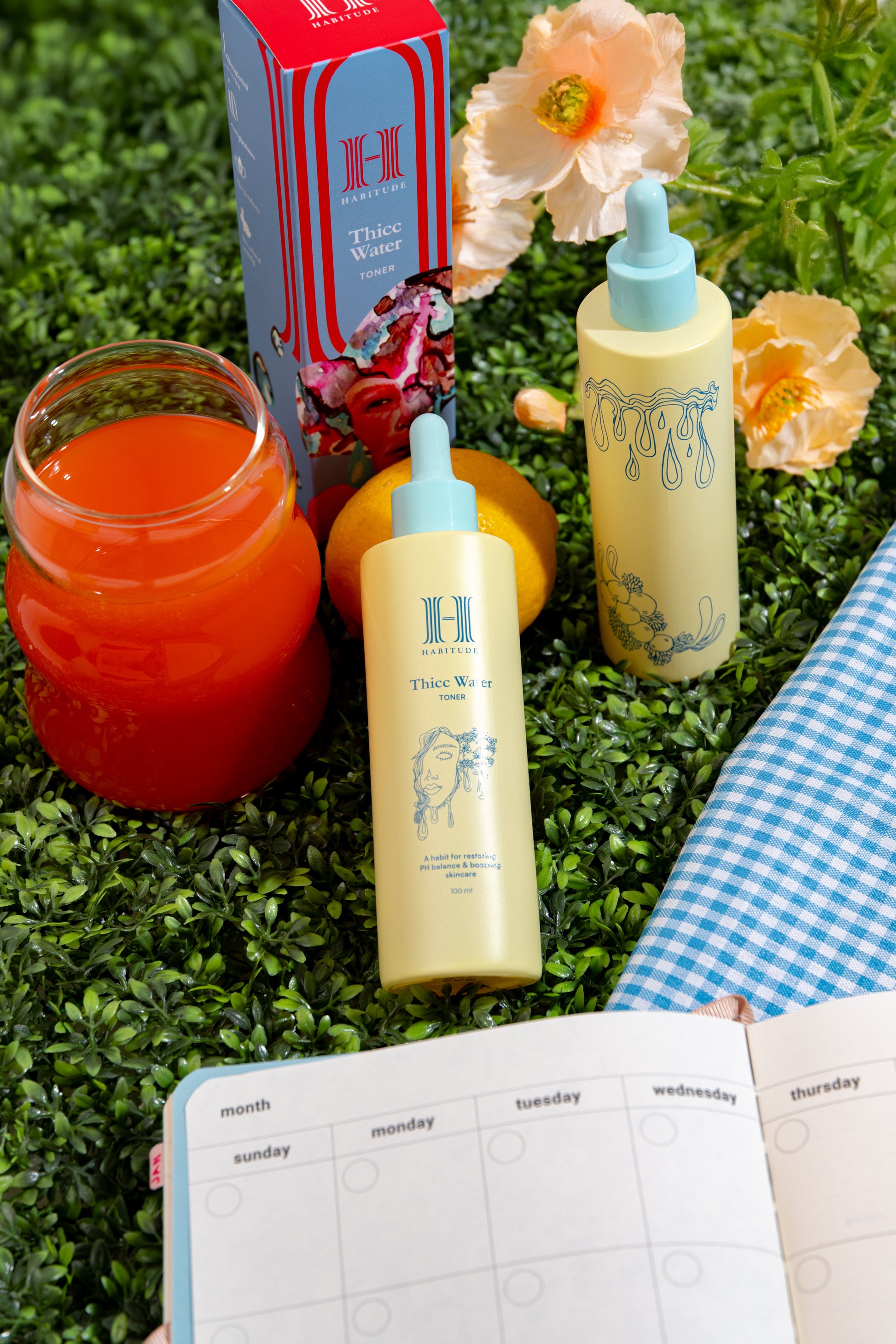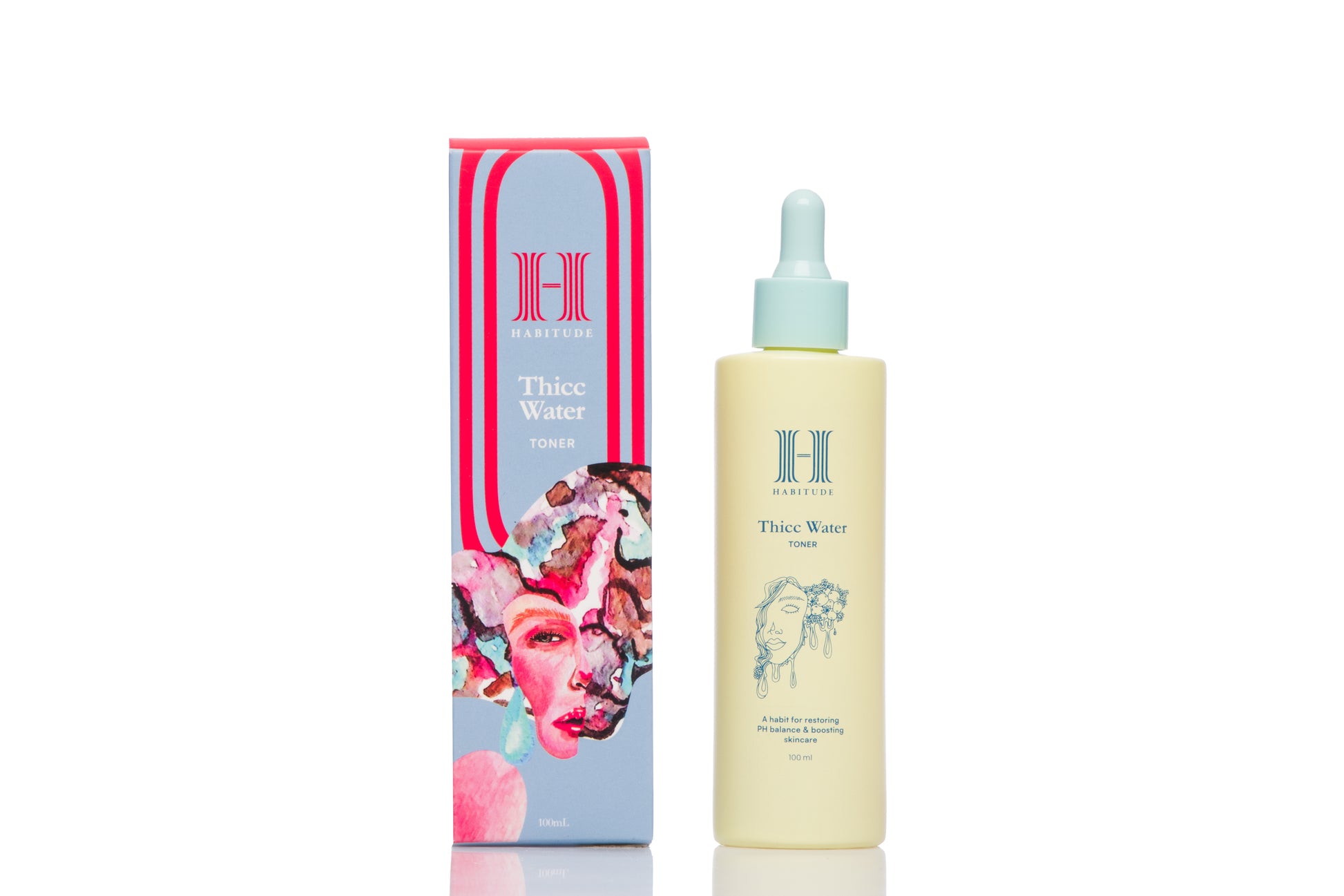 For seriously good skin prep, saturate a cotton pad or apply the Habitude Thicc Water Toner directly and thoroughly on the face and neck twice daily. This toner is thicc with pomegranate, VB9+, Folic Acid Ferment Filtrate, and more to further cleanse the skin, even out your complexion, control oil, and prepare your skin to get the best of the rest of your skincare routine.
